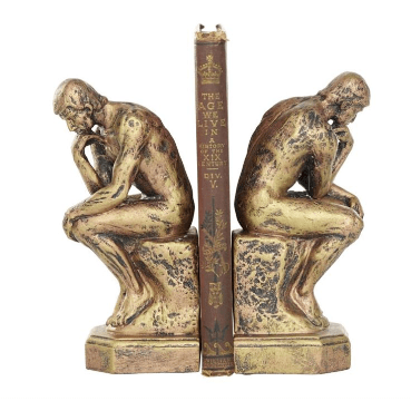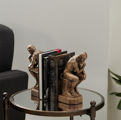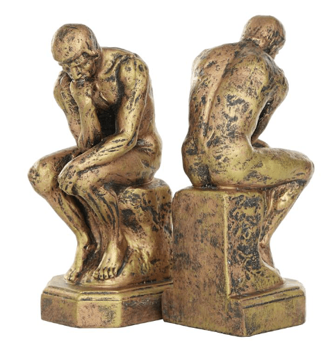 Esta escultura funcional es mucho más que un objeto decorativo: es una invitación a la contemplación y al pensamiento profundo. Representando la figura de un pensador en reposo, su forma transmite introspección, calma y sabiduría. Hecho de resina de alta calidad, su acabado suave y uniforme permite percibir cada línea del diseño con claridad. Es ideal para sostener libros en bibliotecas, escritorios o estanterías, mientras aporta un valor estético y simbólico inigualable. Esta pieza se adapta a ambientes clásicos y modernos, aportando elegancia sin esfuerzo. Gracias a su formato compacto, es fácil de ubicar en espacios pequeños o superficies compartidas. Su presencia genera conversación y detiene la mirada, convirtiéndose en ese tipo de objeto que no pasa desapercibido. Pensado para quienes valoran tanto la utilidad como el diseño, es un excelente regalo para amantes de la lectura y la filosofía.