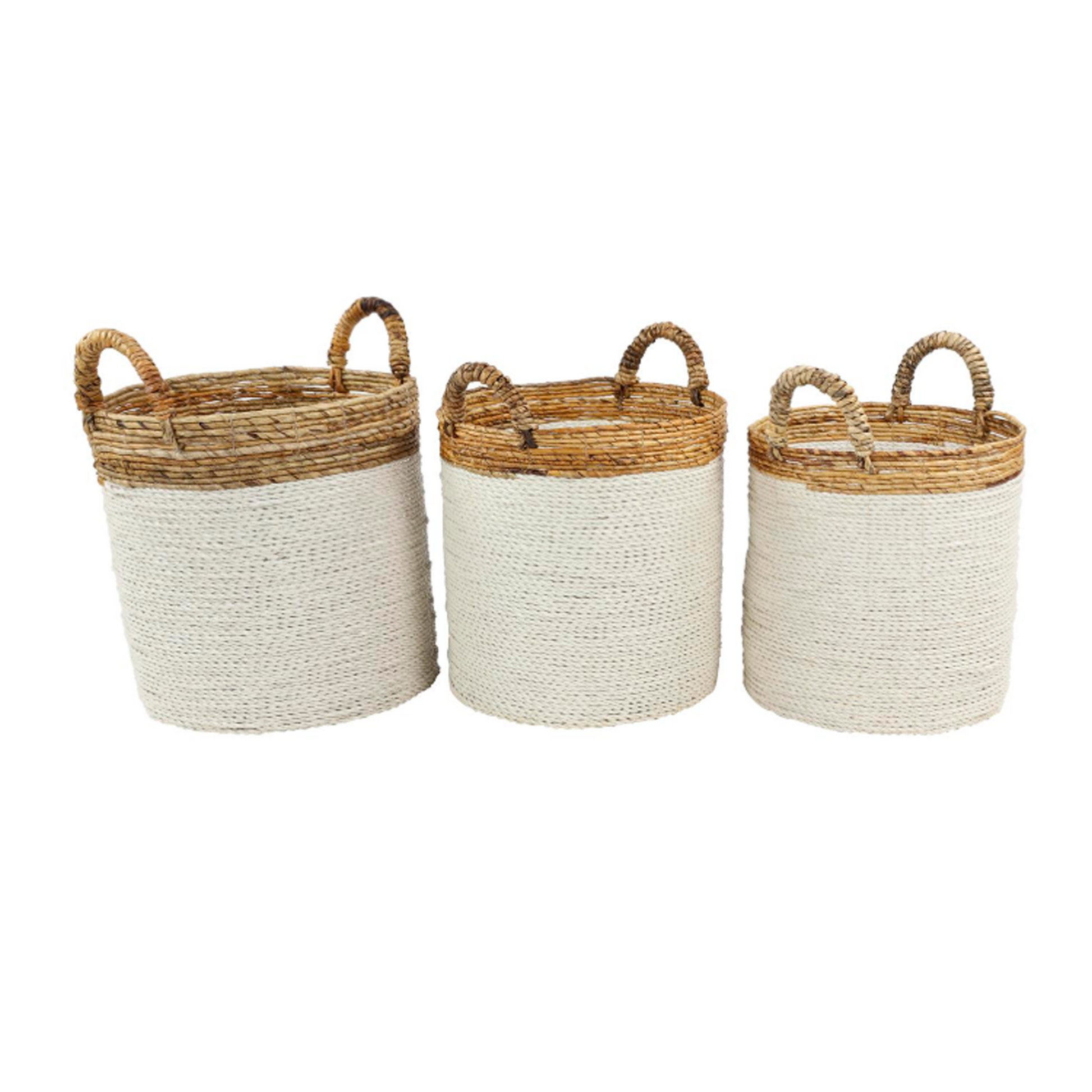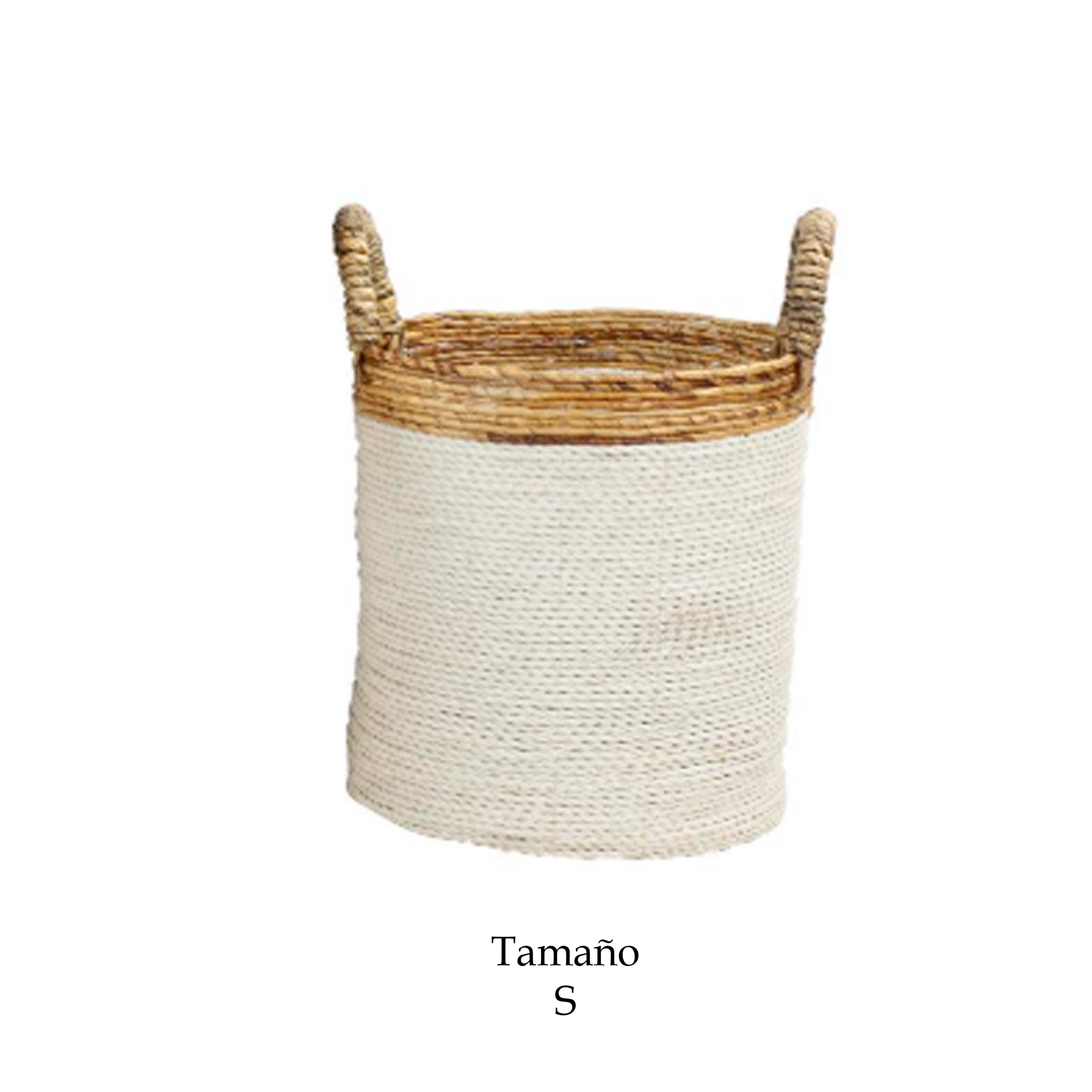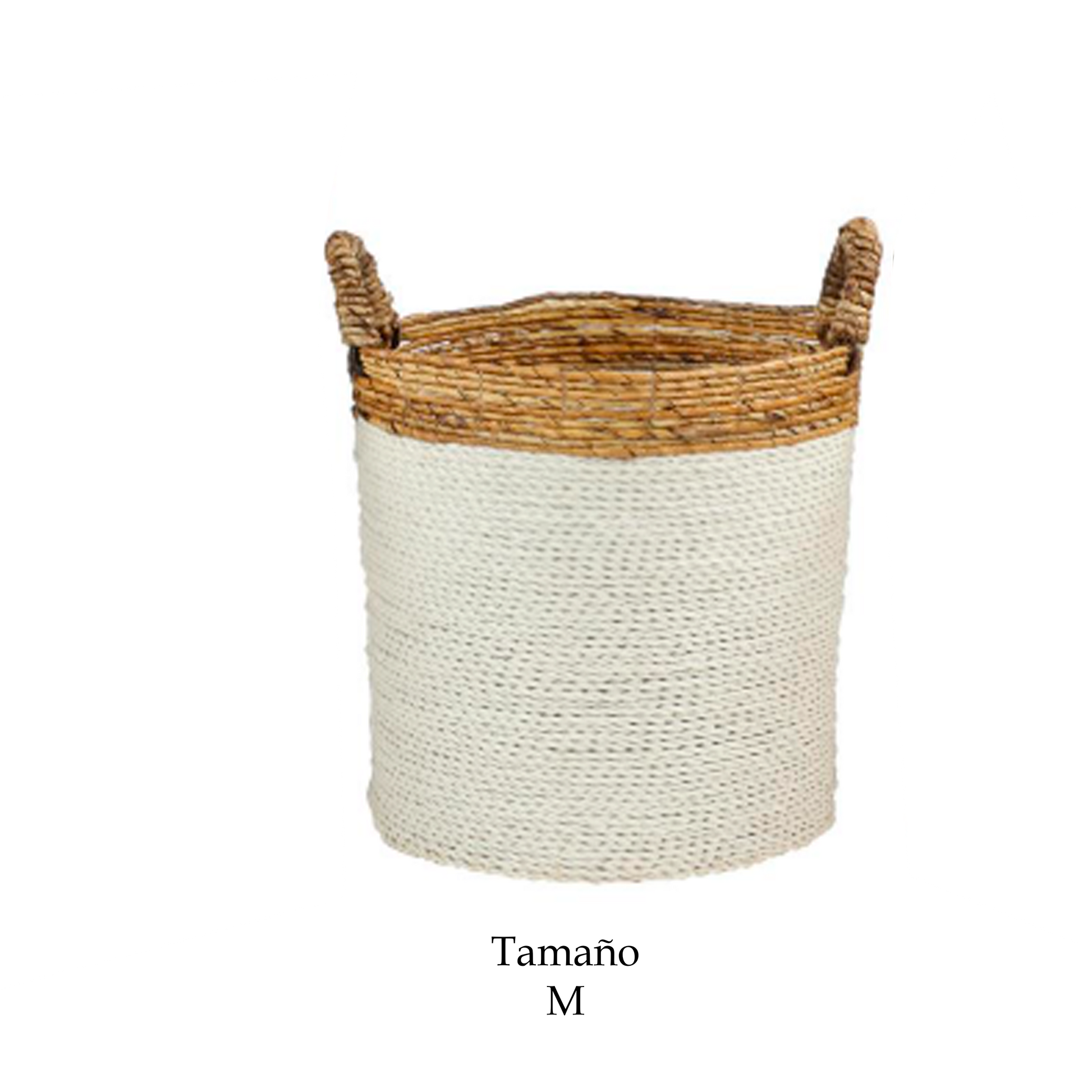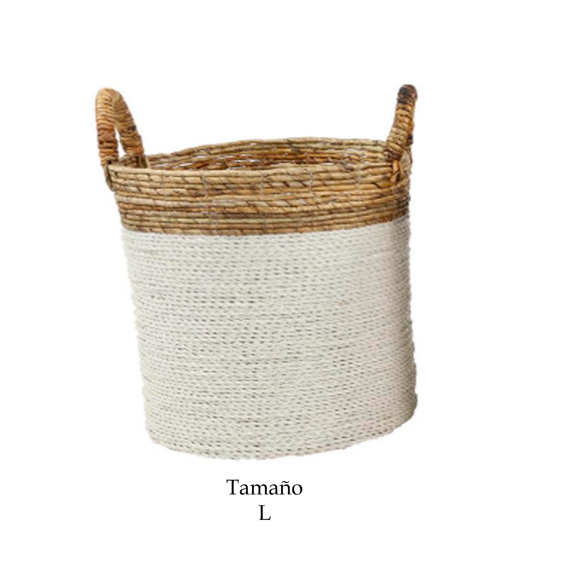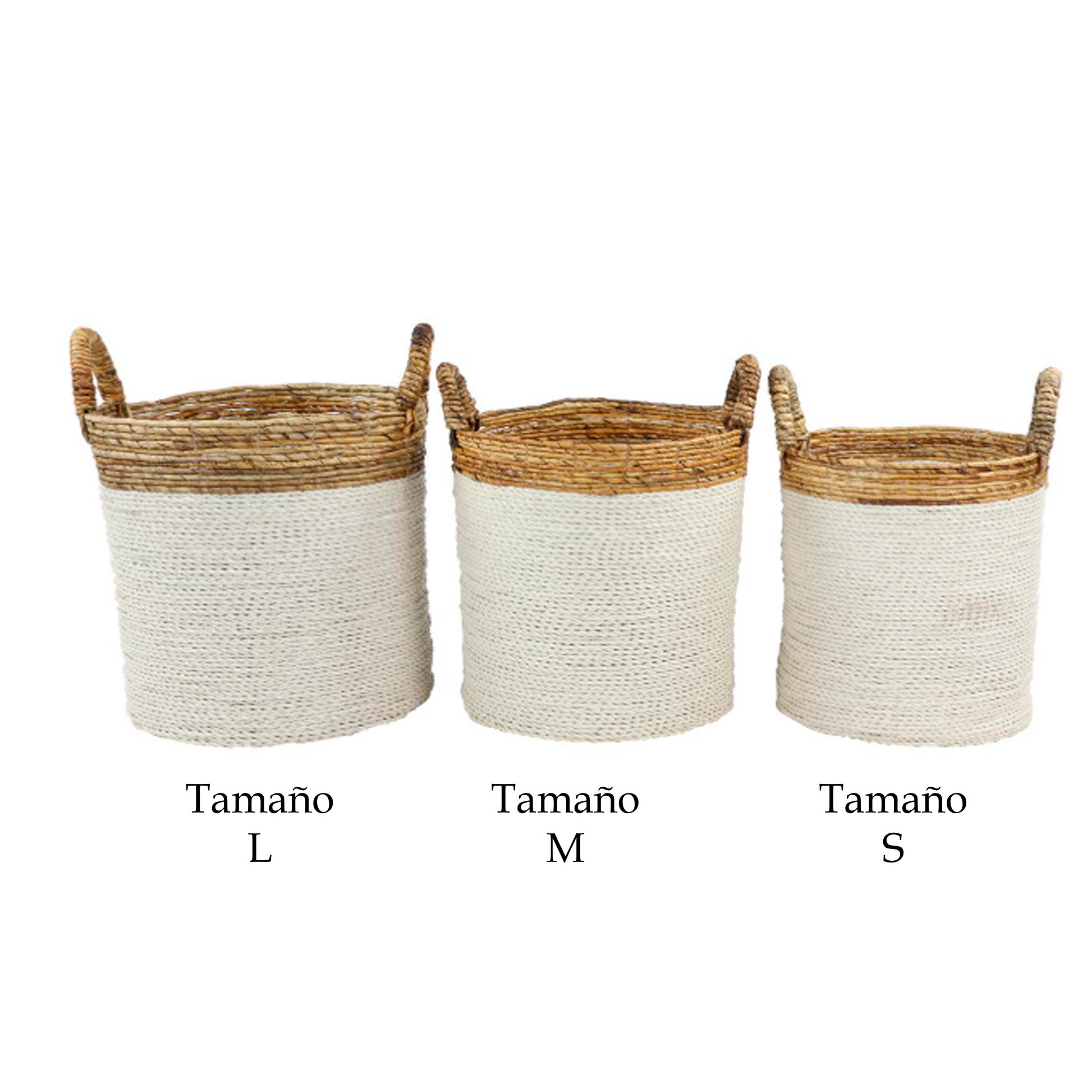 Canasto Ibiza Blanco disponible en tres tamaños, opción de almacenamiento decorativo y funcionales de color marrón está elaborado con junco marino de alta calidad, lo que garantiza durabilidad y atractivo estético.