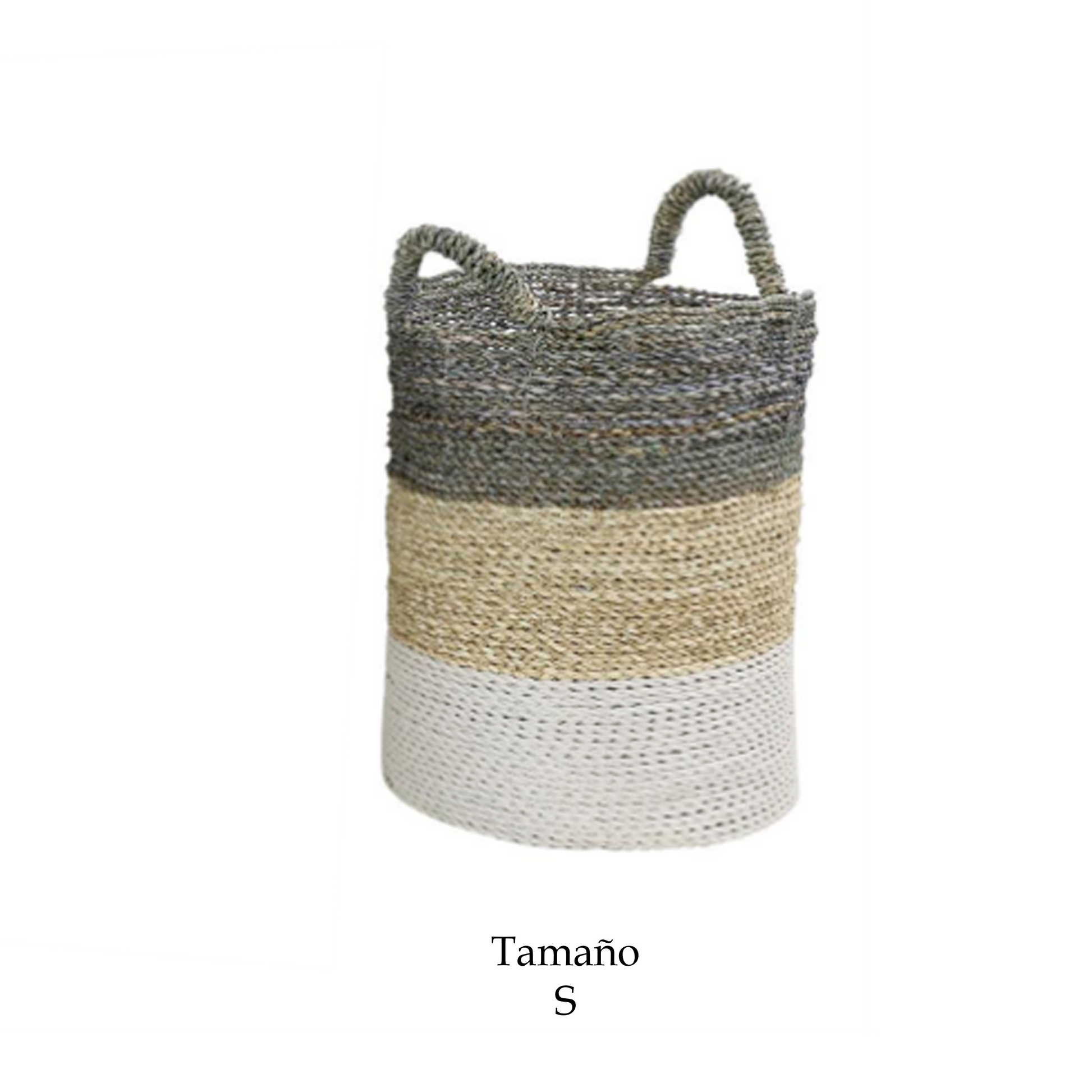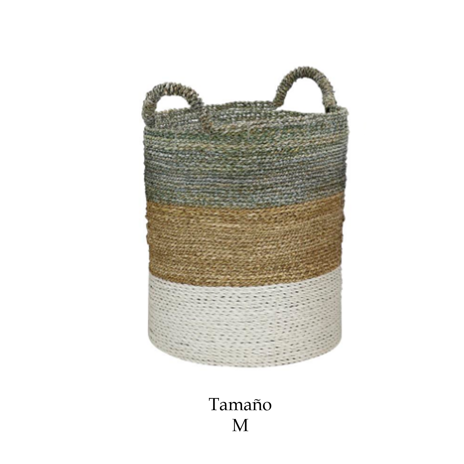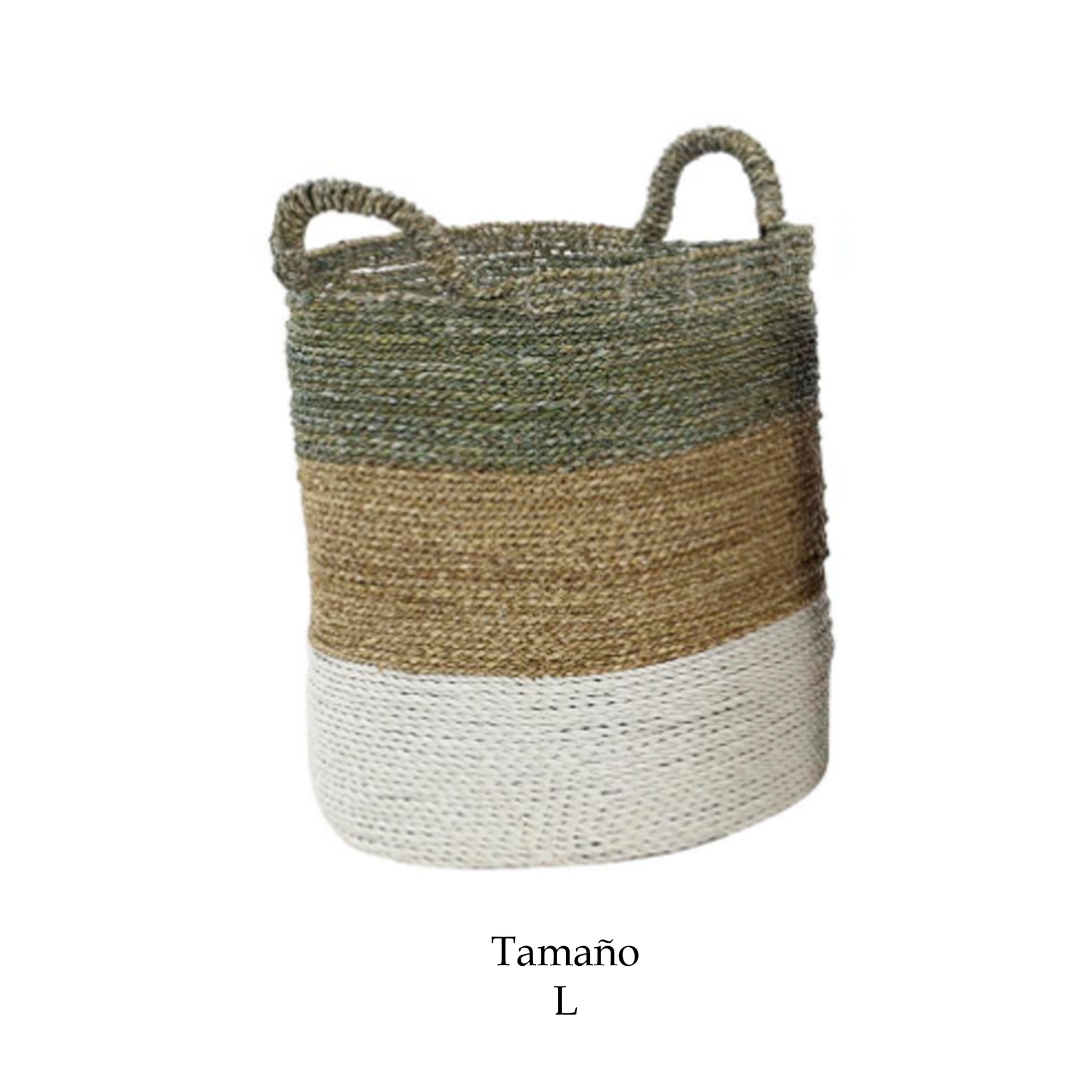 Canasto Ibiza Blanco disponible en tres tamaños, opción de almacenamiento decorativo y funcionales de color marrón está elaborado con junco marino de alta calidad, lo que garantiza durabilidad y atractivo estético.