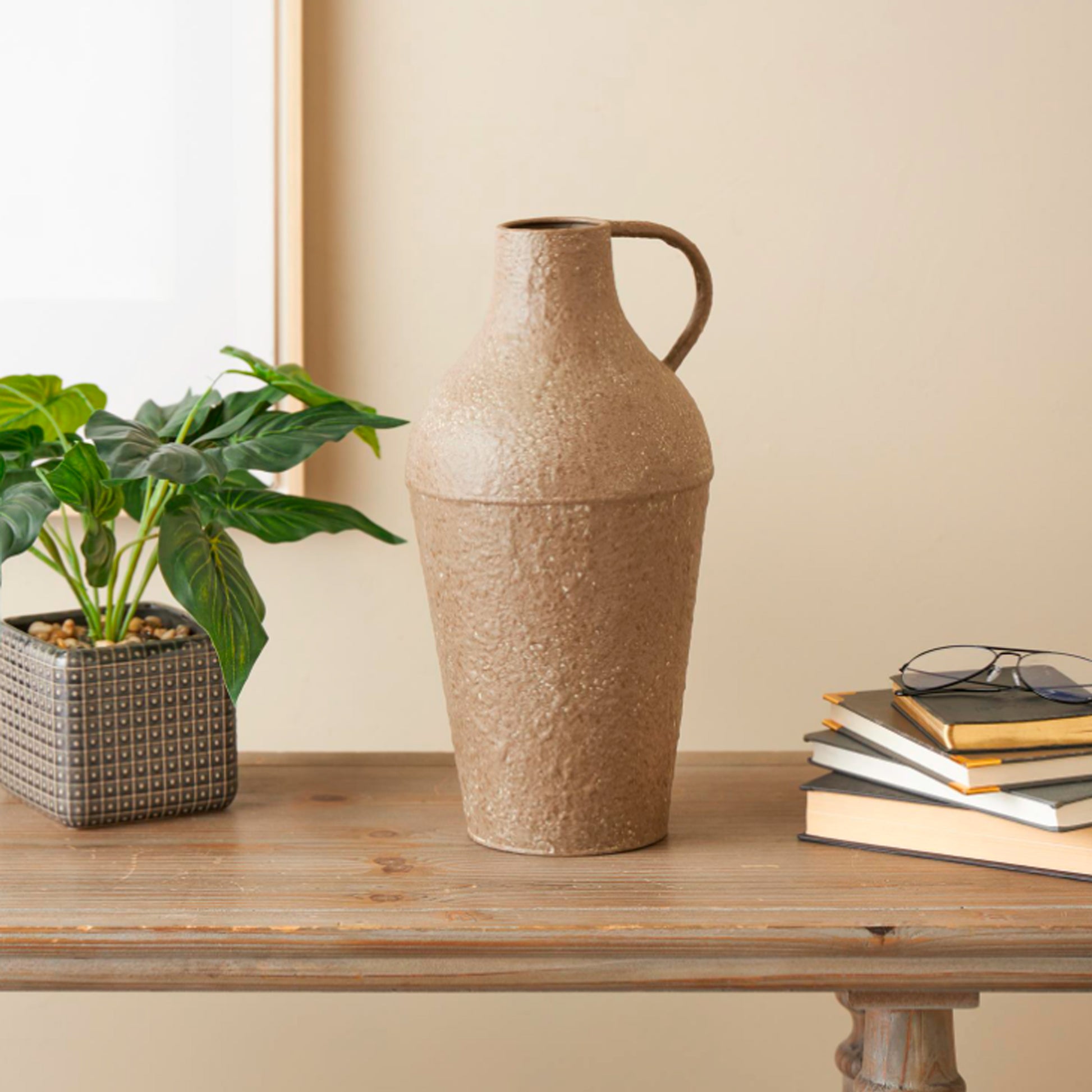 Diseñado con una belleza robusta y un encanto terrenal, donde la simplicidad natural, la calidez y los materiales orgánicos crean una atmósfera saludable, fabricado en metal incluye un asa de inspiración antigua para facilitar su transporte y añadir un atractivo estético.