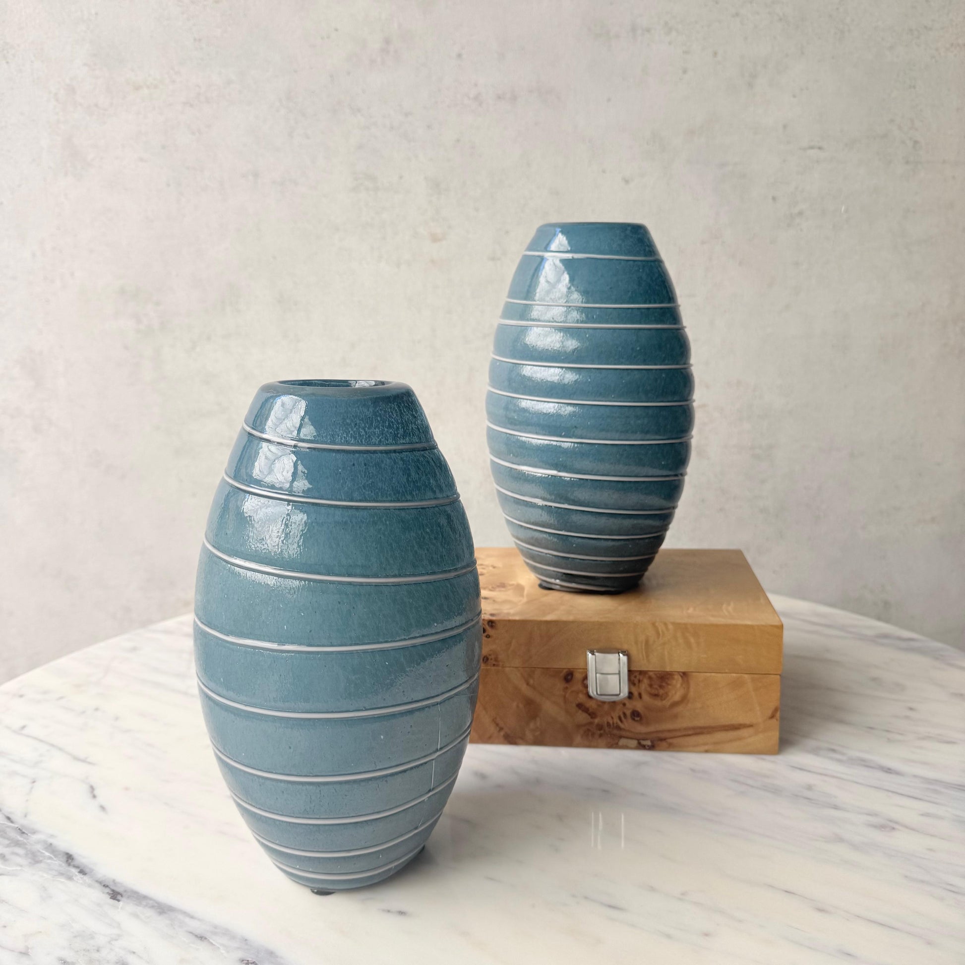 Este llamativo jarrón presenta un diseño en espiral que combina tonos azules intensos y blanco suaves, creando un efecto visual único en cualquier habitación. Perfecto para exhibir flores frescas, ramas decorativas o como pieza decorativa independiente, este jarrón complementa diversos estilos de decoración, desde contemporáneos hasta costeros. Su tamaño lo convierte en una pieza central ideal para mesas de comedor, repisas o entradas.