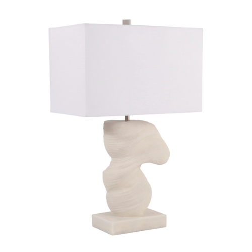 Esta lámpara decorativa en color blanco está elaborada en resina, con una silueta artística que funciona como pieza decorativa incluso apagada. Ideal para mesas laterales, arrimos o veladores, donde suma carácter y luminosidad con un estilo atemporal.