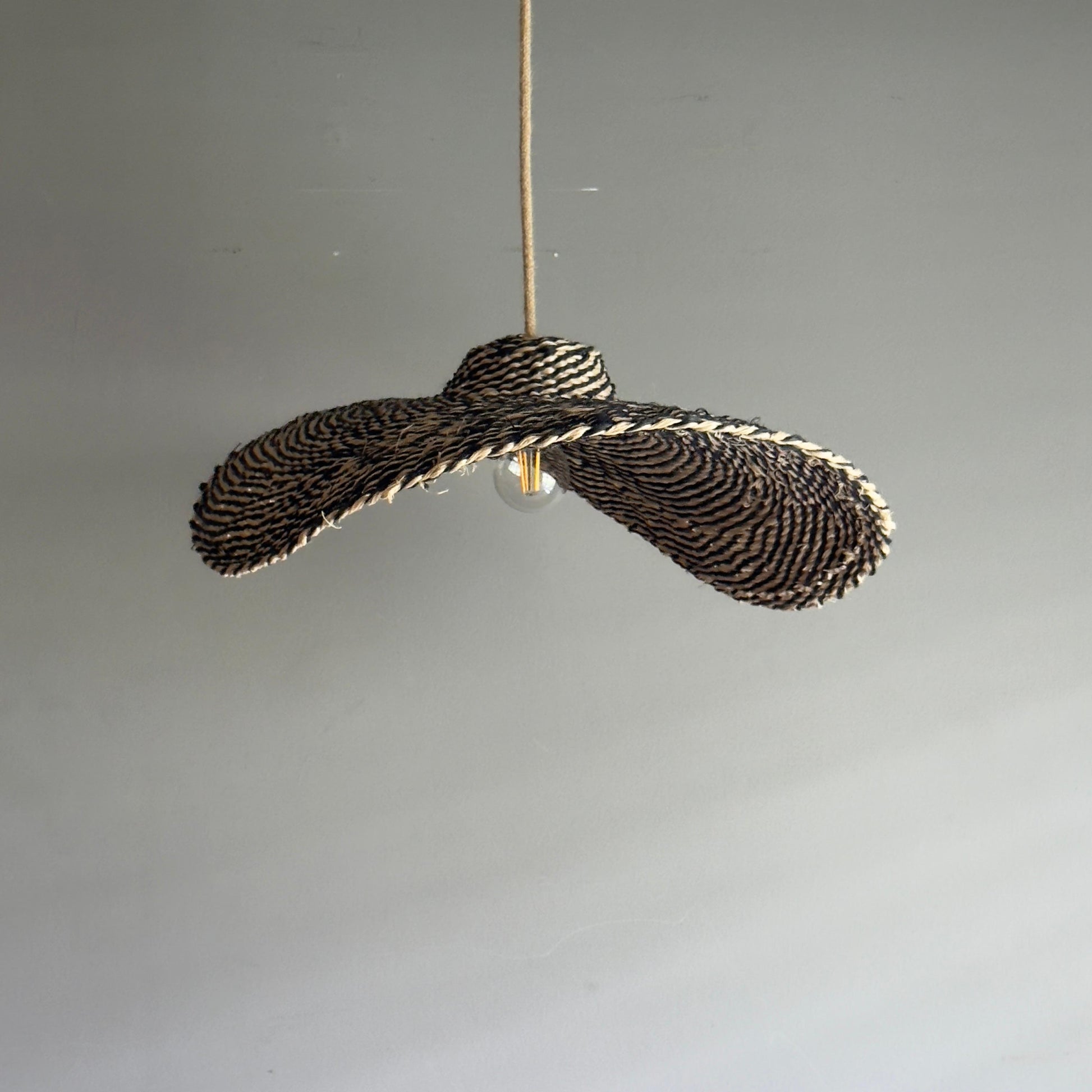 - • LÁMPARA TEJIDA CON TÉCNICA DE CESTERÍA