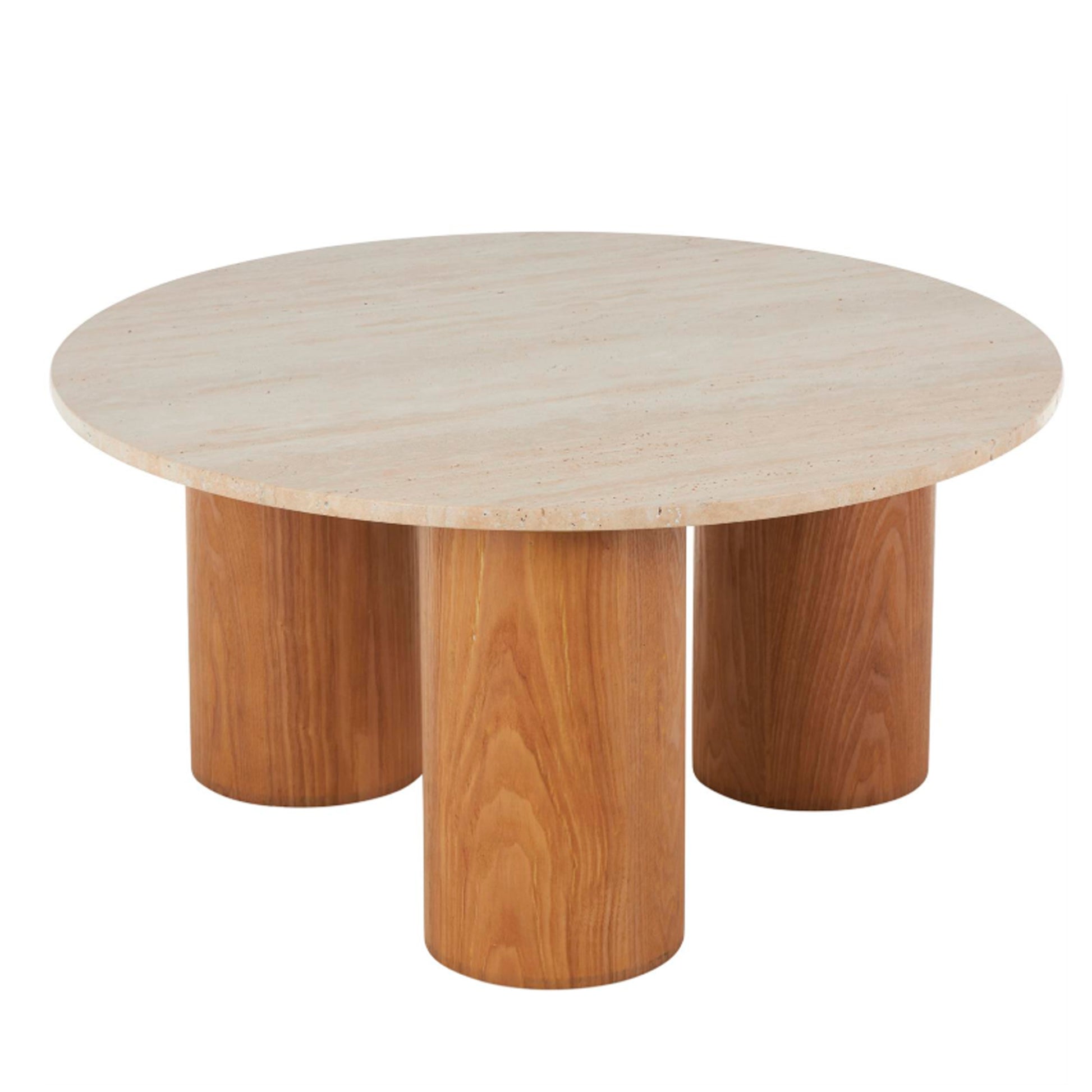 Esta mesa auxiliar Fabricada en madera encina y mármol Travertino