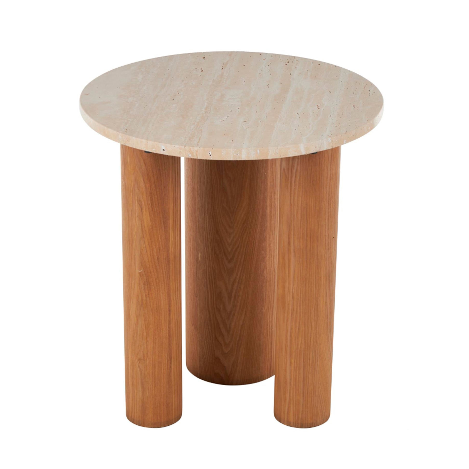 Esta mesa auxiliar Fabricada en madera encina y mármol Travertino