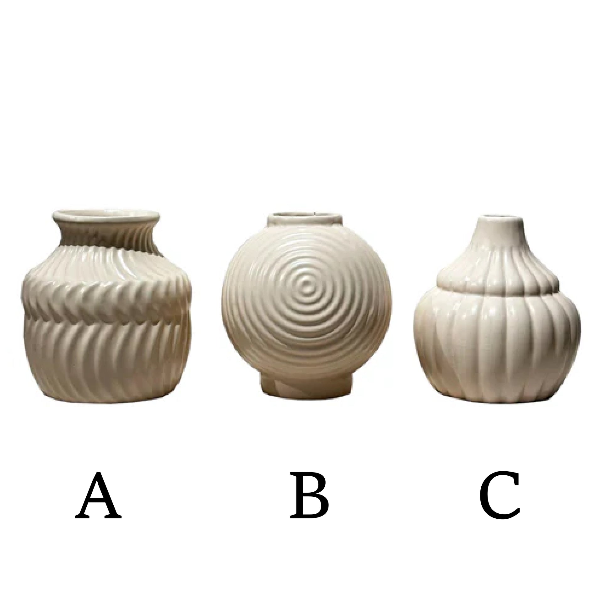 Hecho de cerámica de alta calidad, este juego de jarrones decorativos de color crema es duradero y elegante.