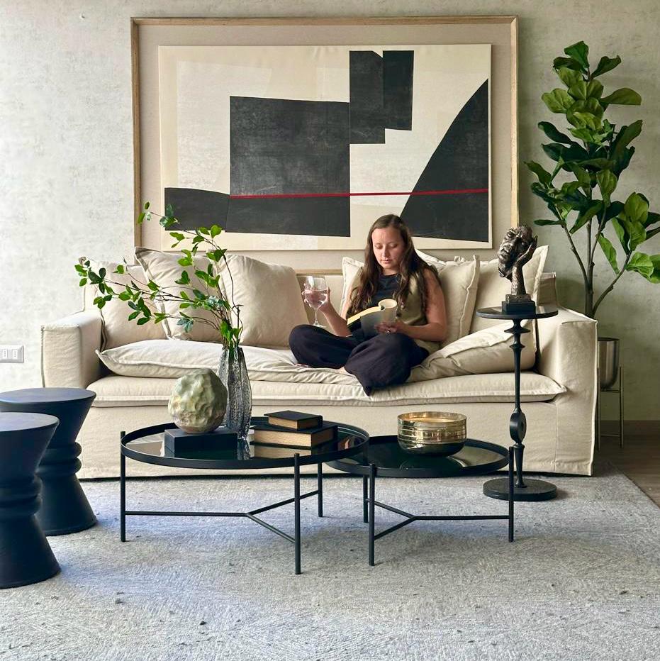 Su diseño es limpio, contemporáneo y funcional, con proporciones pensadas para adaptarse a diversos rincones del hogar: junto a un sofá, al lado de la cama o como complemento en un rincón de lectura. La transparencia del vidrio permite mantener la sensación de amplitud, mientras que la estructura metálica negra añade un toque de carácter y modernidad. Estas mesas no solo son útiles, sino que también cumplen un rol decorativo protagonista, elevando el nivel estético del ambiente sin recargarlo.