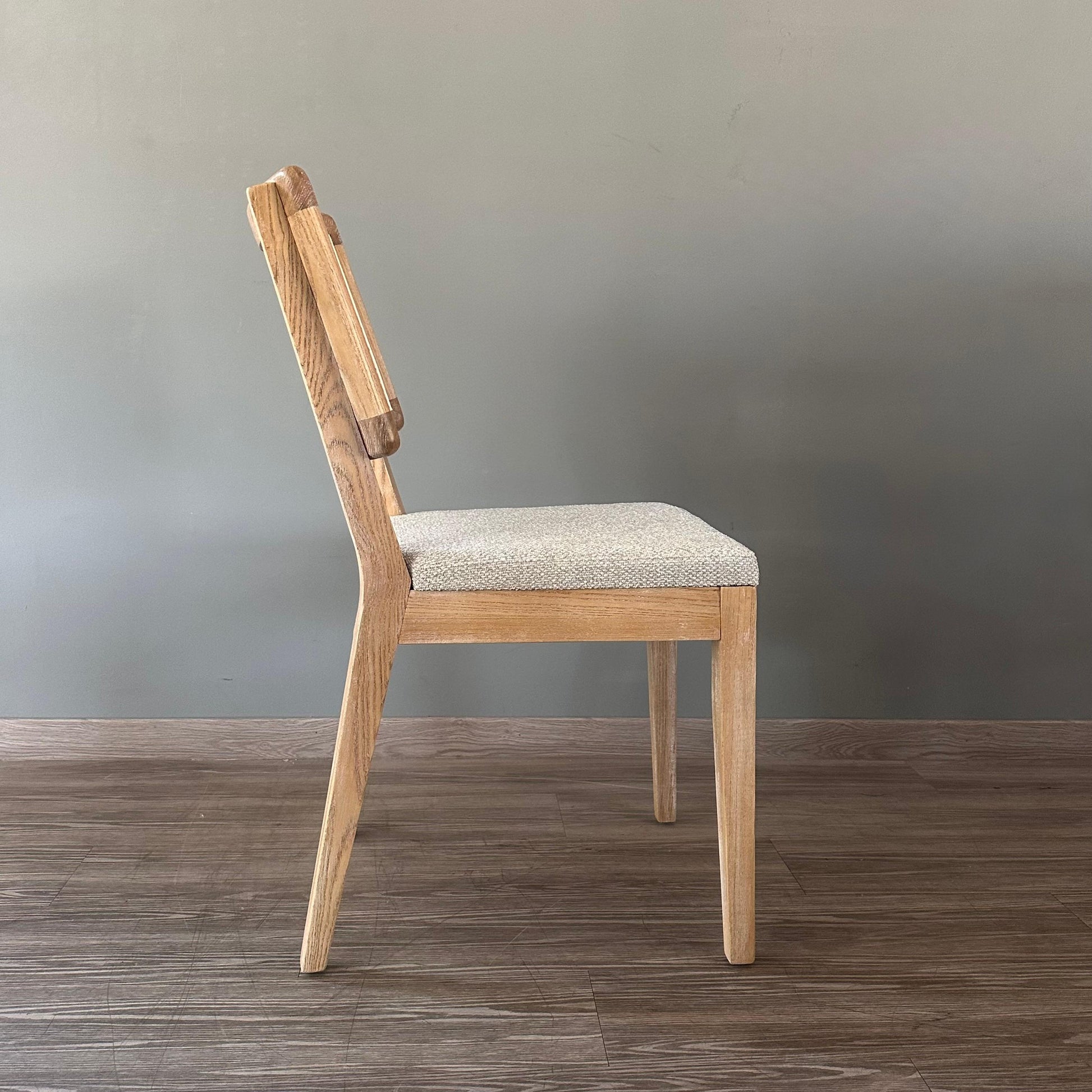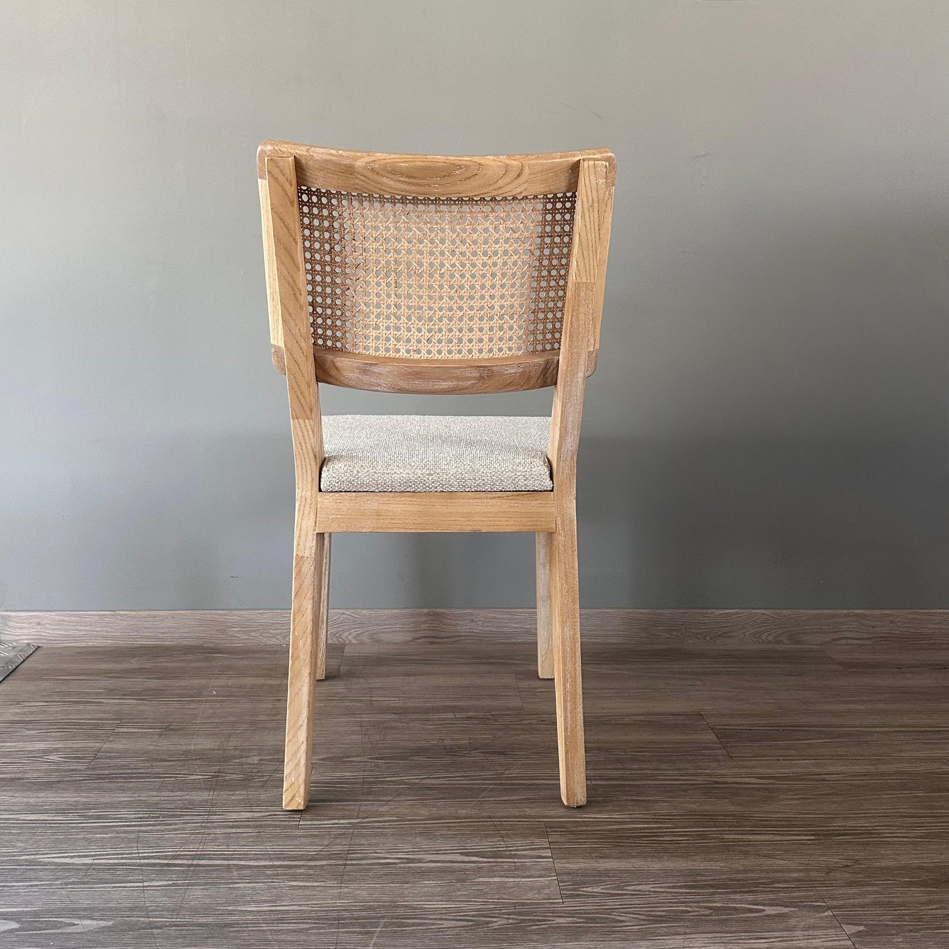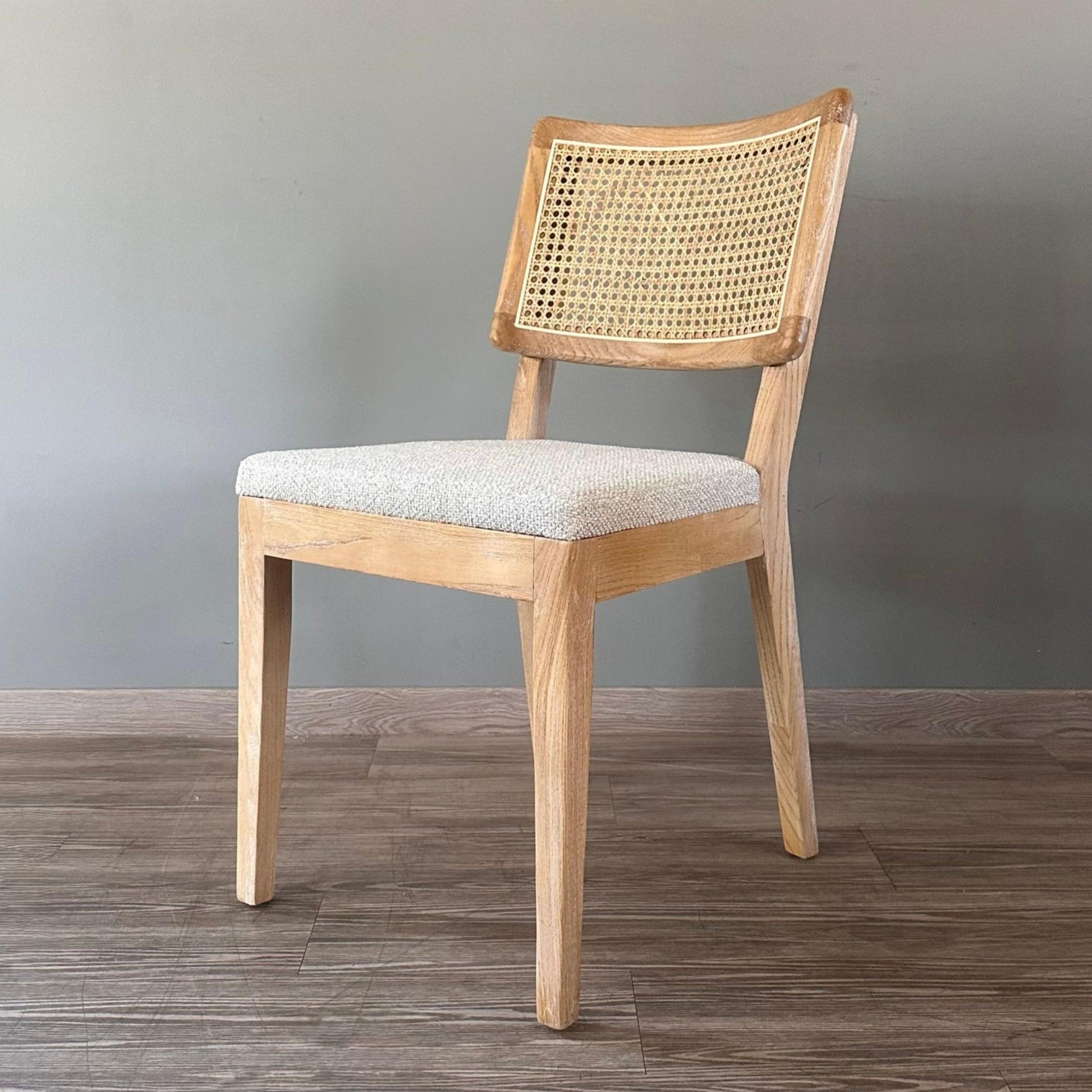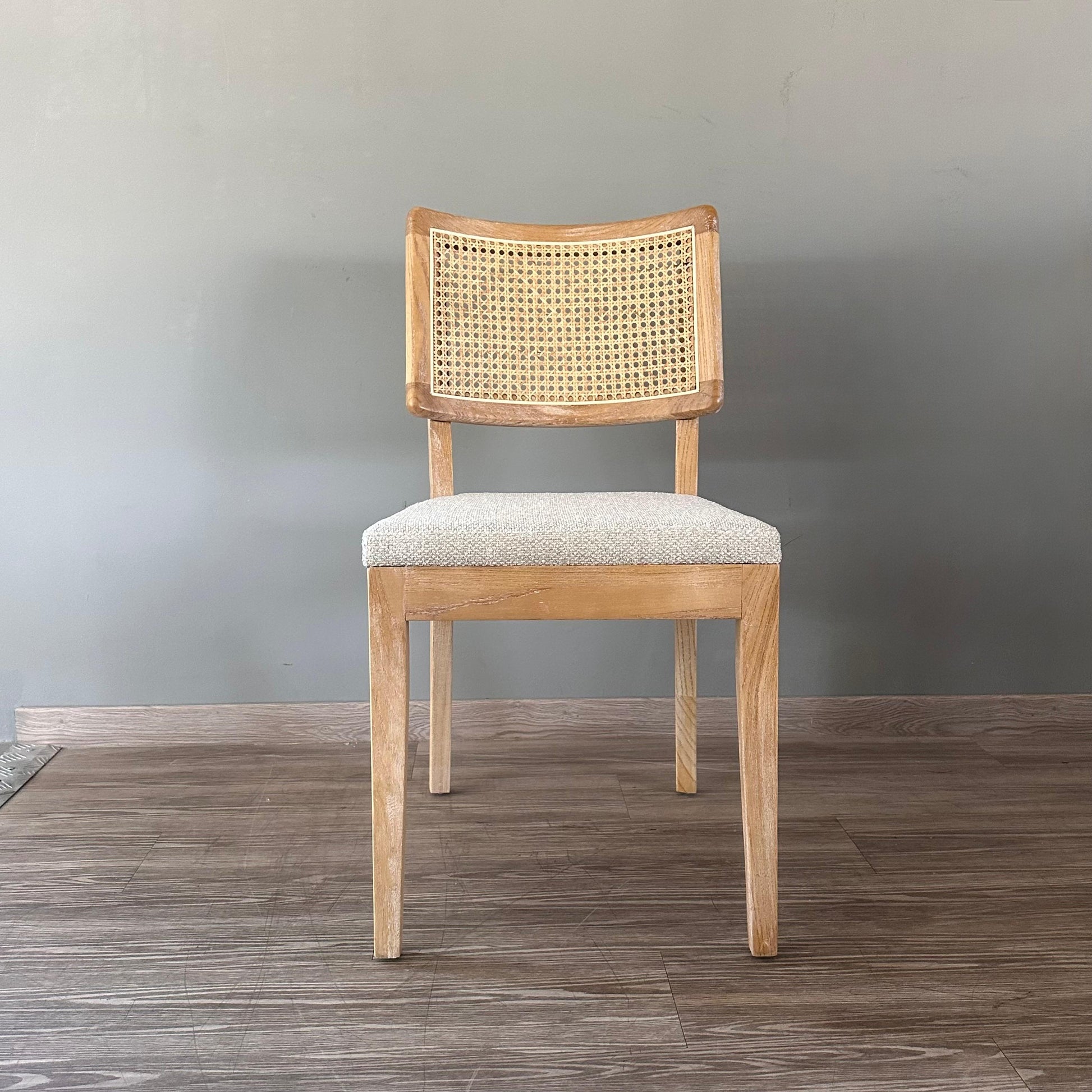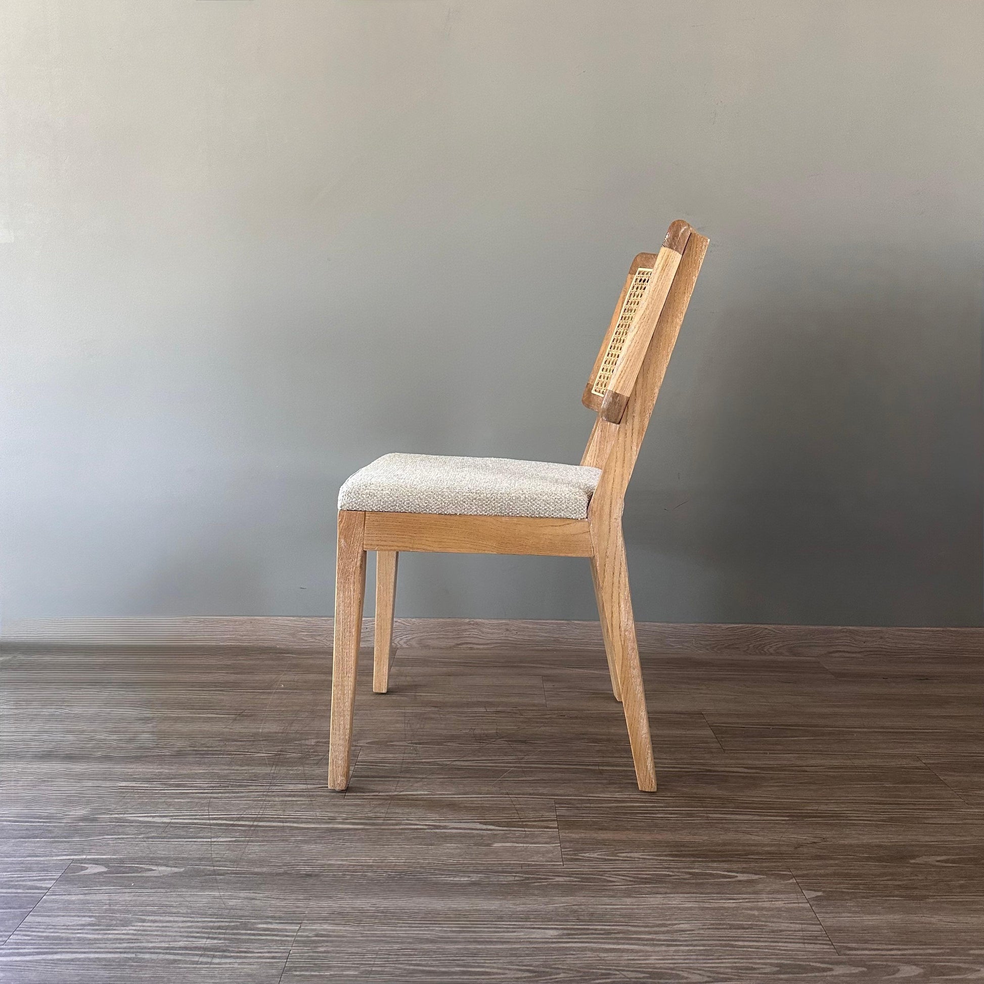 Es perfecta para acompañar una mesa de comedor de madera maciza o para habitar un rincón de lectura con luz suave. Su tapiz en tono crudo añade una nota neutra y suave que se adapta con facilidad a diversas paletas decorativas, aportando una sensación de frescura. Esta silla no busca robar protagonismo, pero inevitablemente lo consigue con su presencia acogedora.