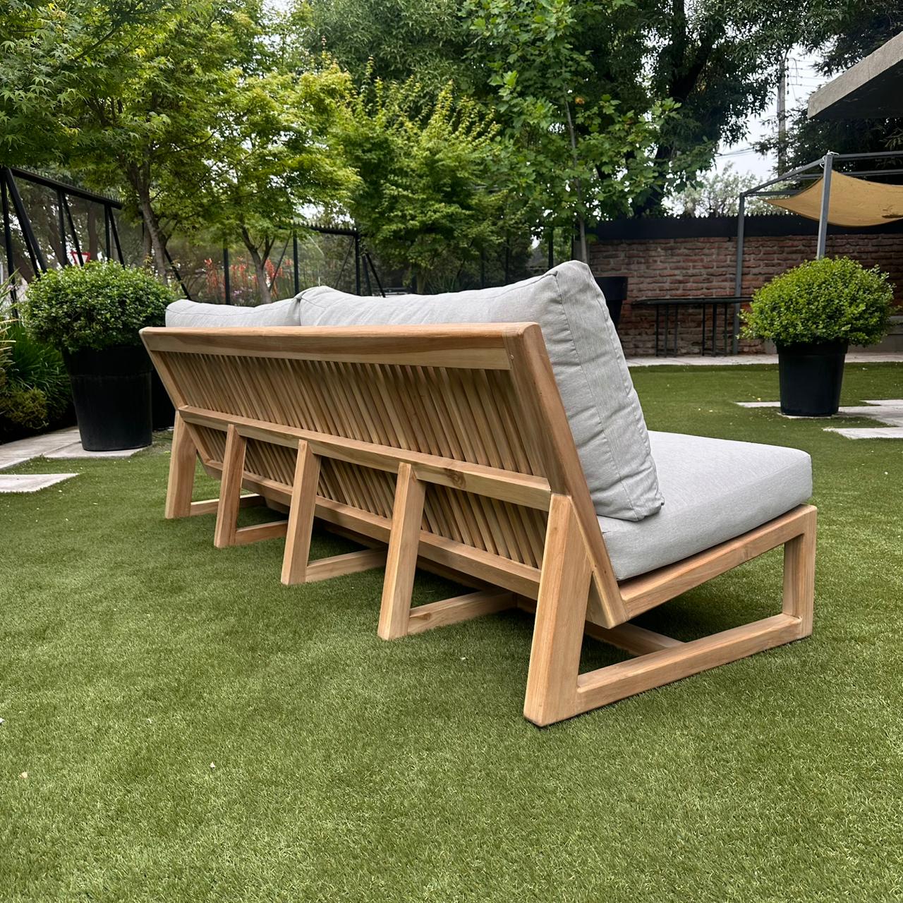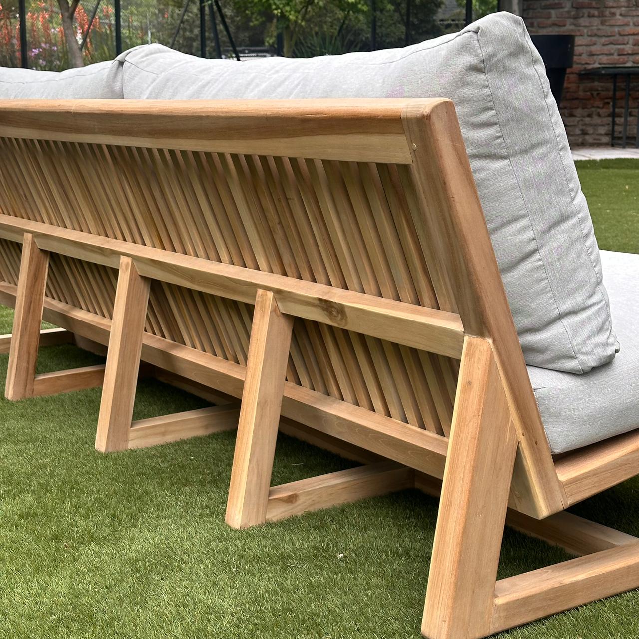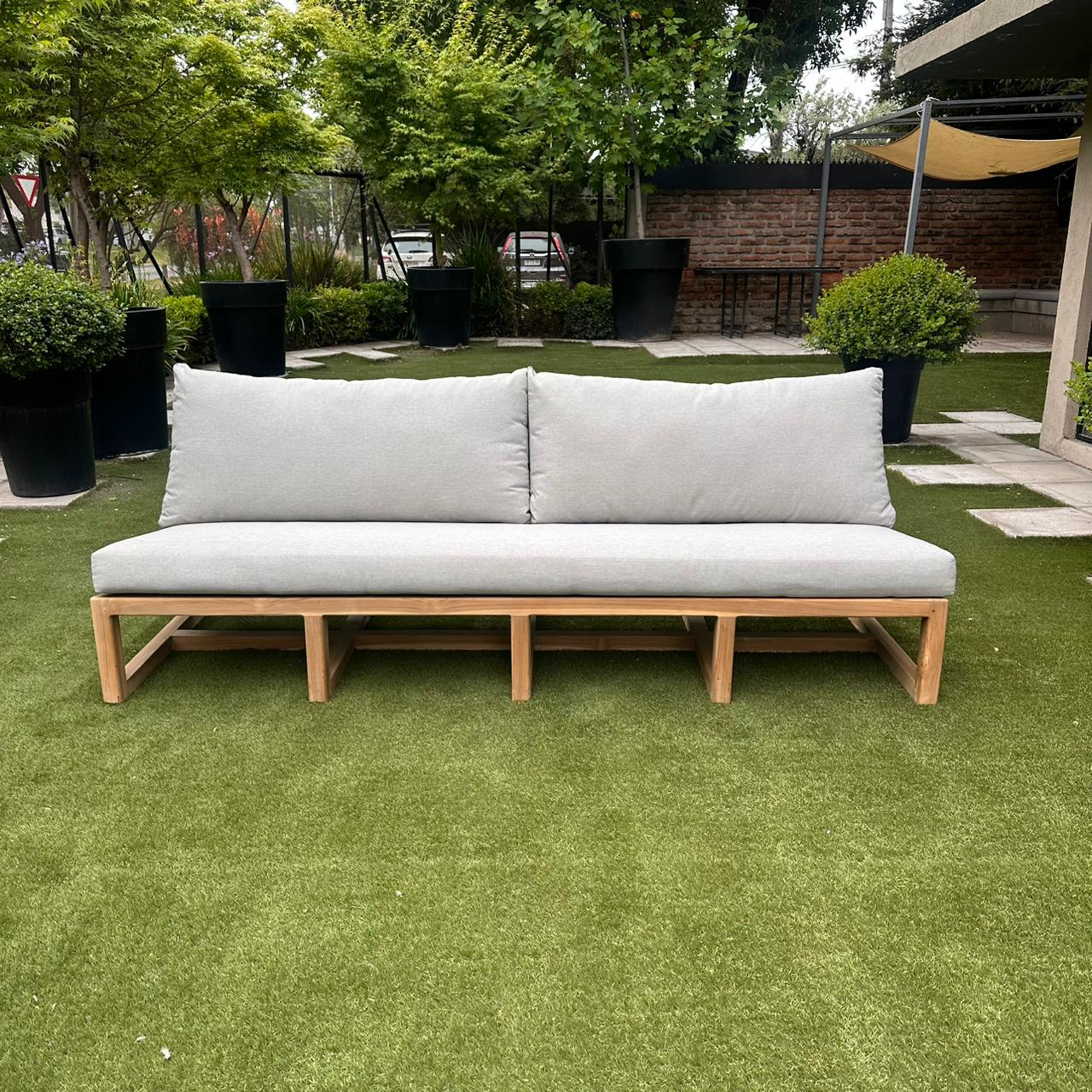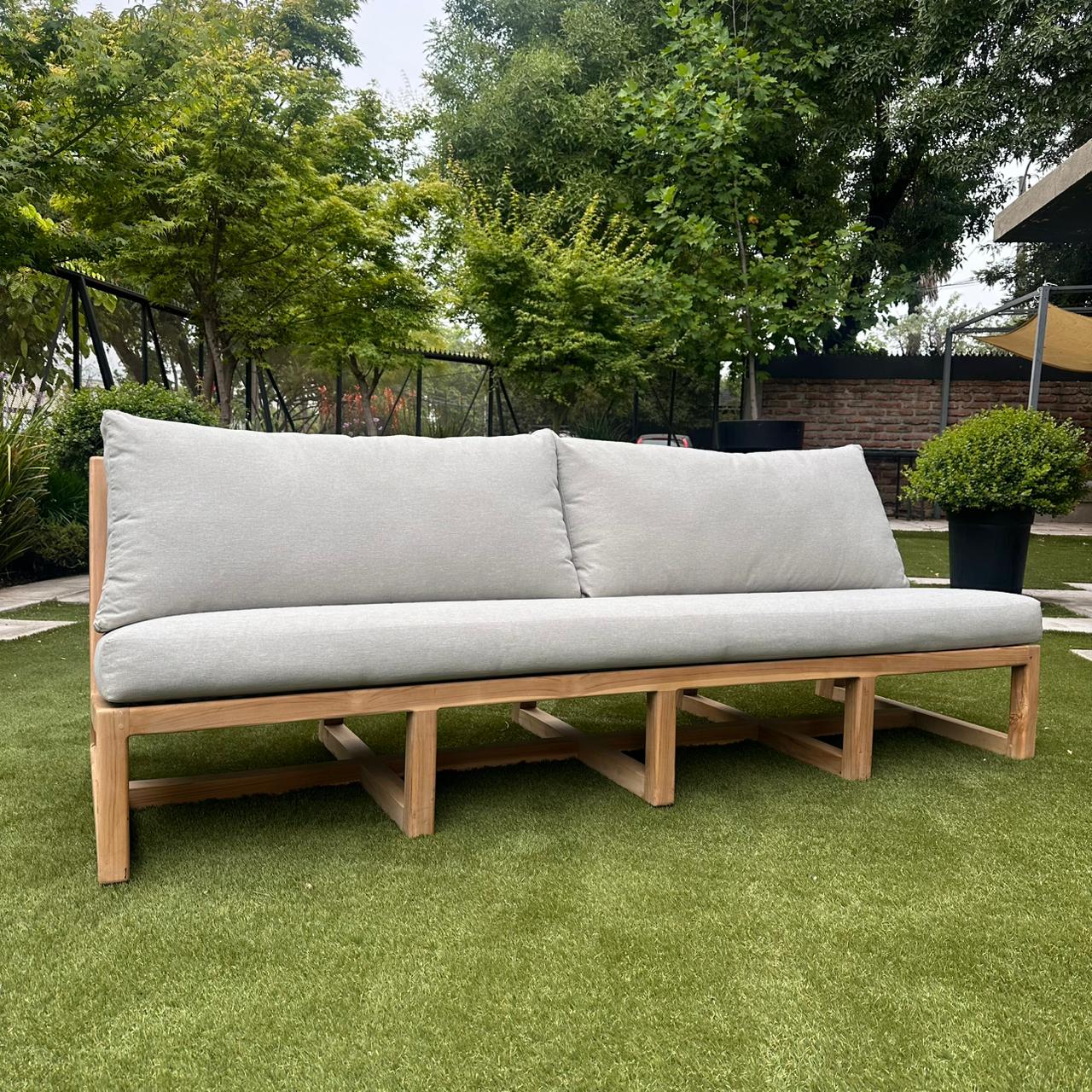 Sofá Andorra 3 cuerpos esta fabricado en Estructura de madera de teca con un acabado envejecido ideal para dar ese look cálido y moderno a la vez . Su asiento está fabricado en e espuma sólida