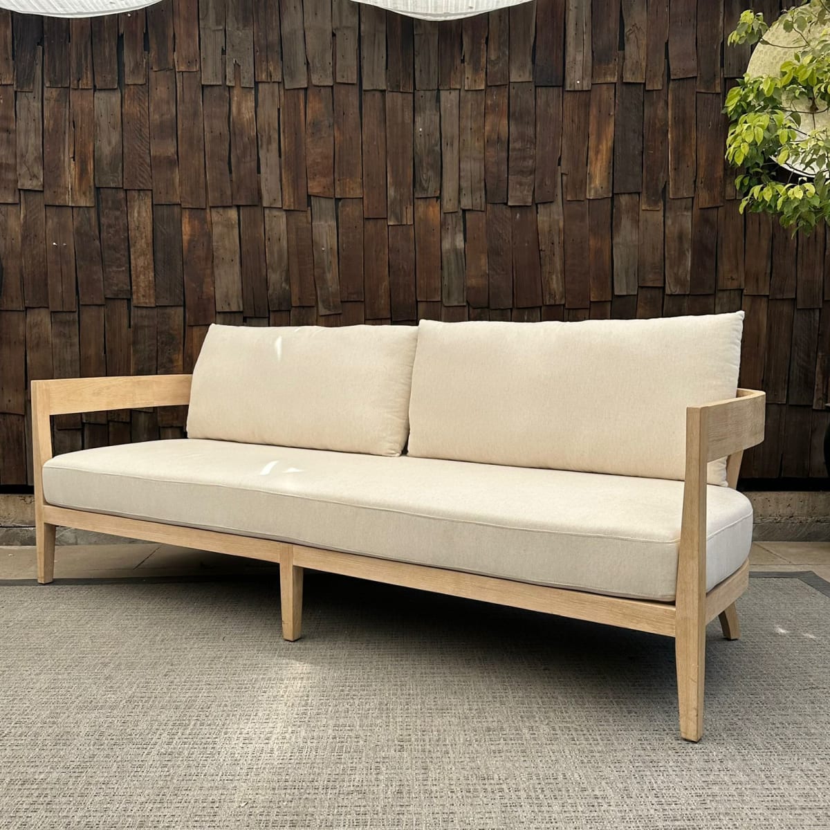 El Sofá Málaga es una pieza que une la solidez de los materiales nobles con una estética cálida y profundamente acogedora. Confeccionado en madera de roble americano y tapizado en un tono crudo que realza su textura, este modelo está pensado para quienes aprecian el diseño sencillo, duradero y lleno de carácter.