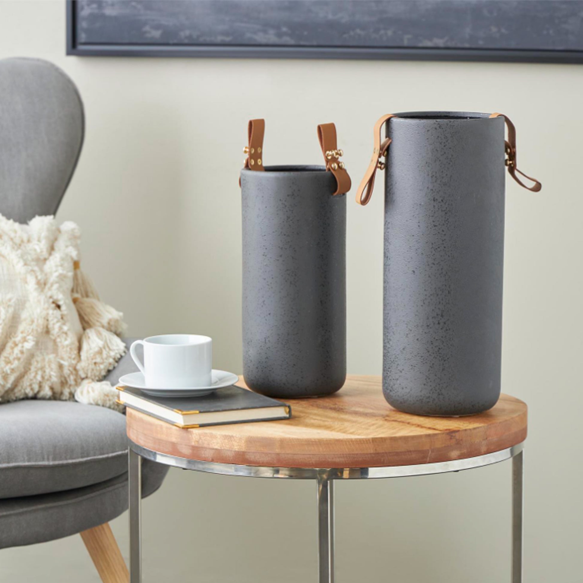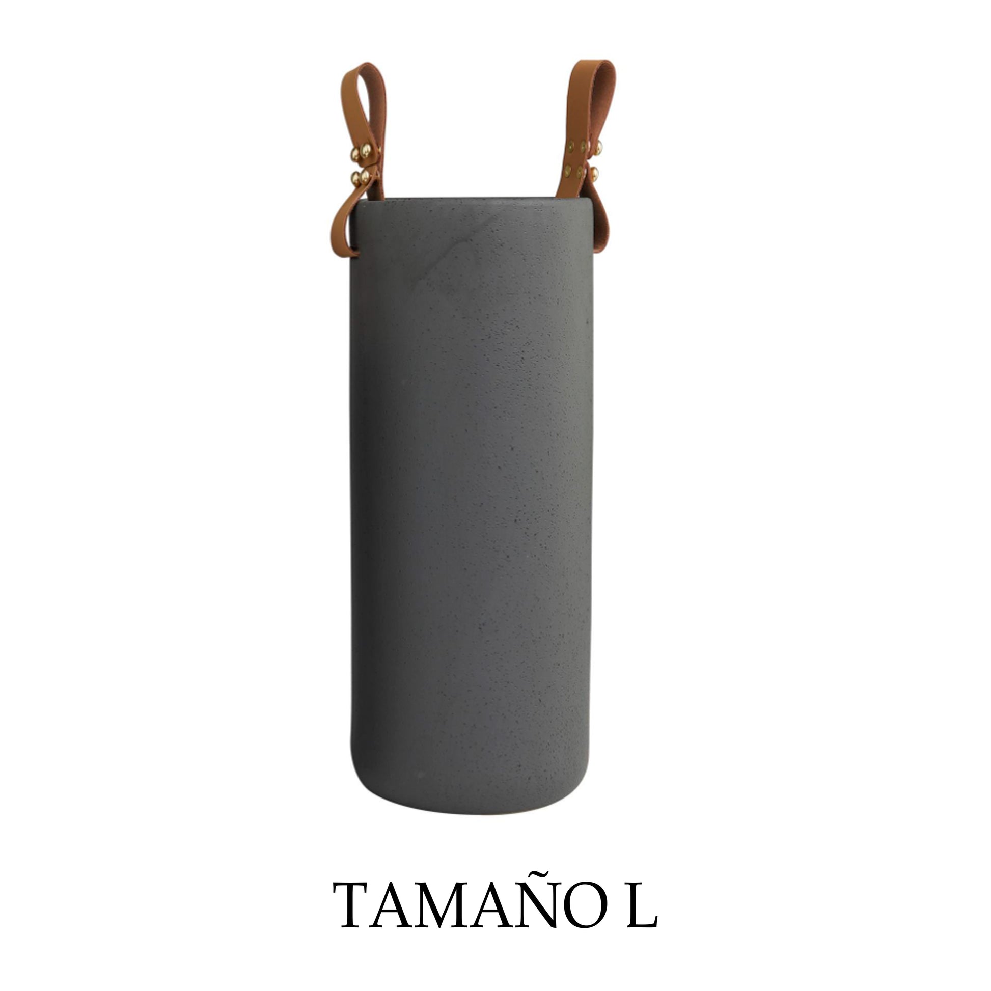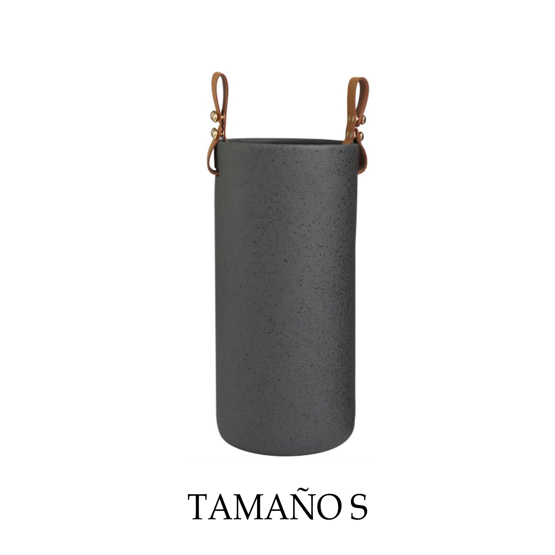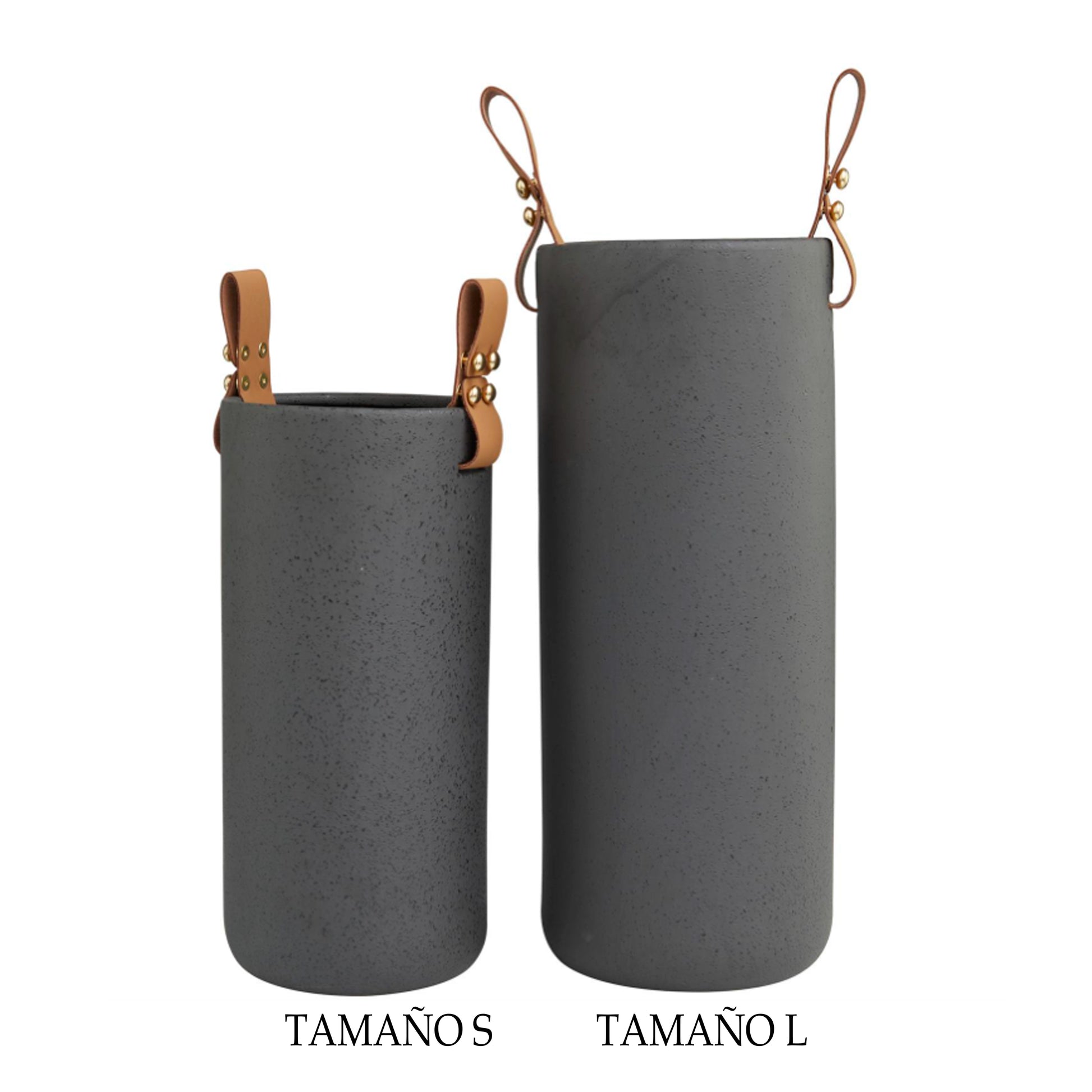 Vasija Avila Negro está hecho de metal y correas de piel sintética, logrando un look único y vanguardista.