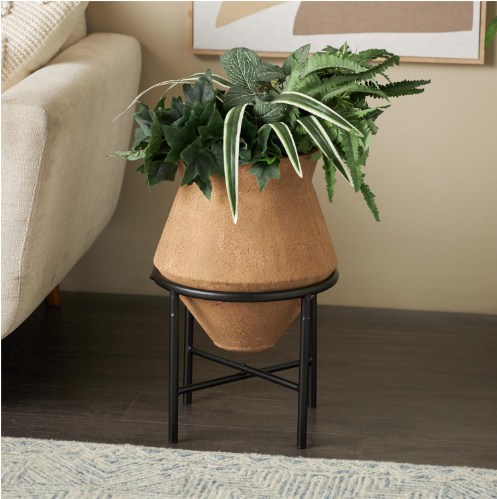 Plantero diseñado con una belleza rústica y un encanto natural que crea una atmósfera acogedora. Decoración soldada de hierro resistente, se coloca sobre un soporte.