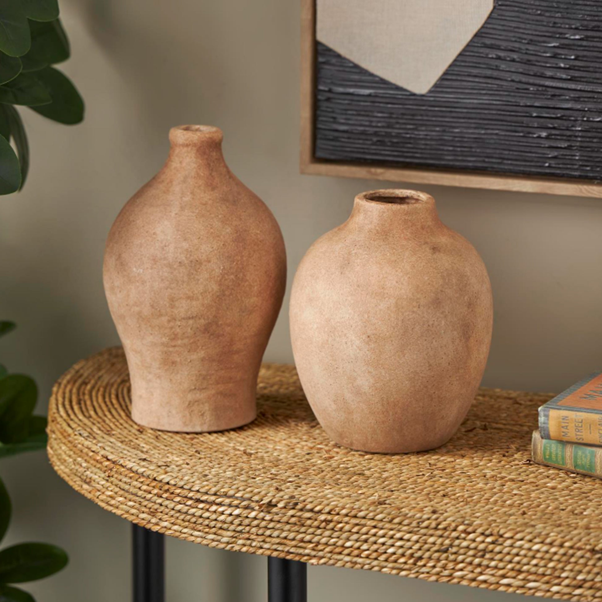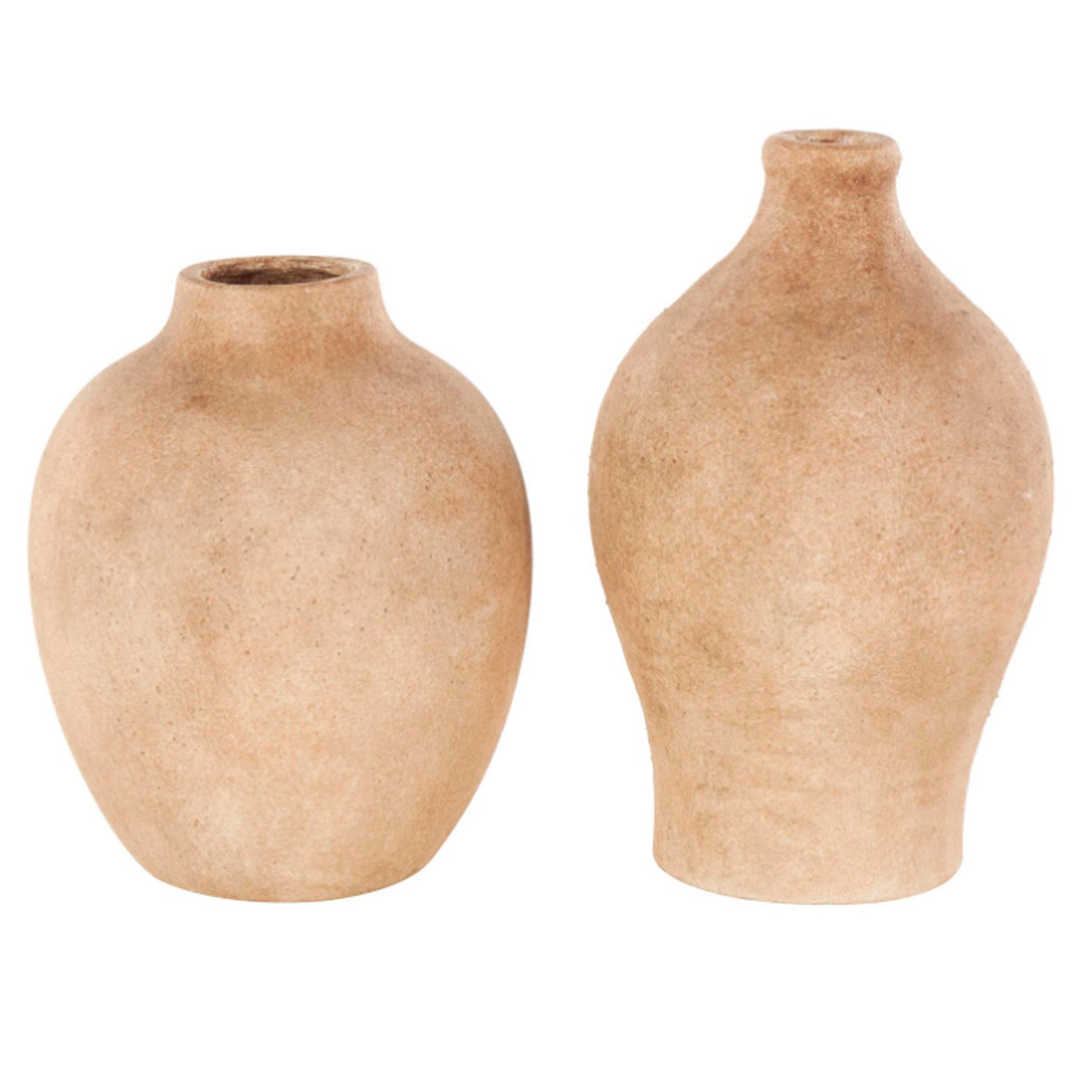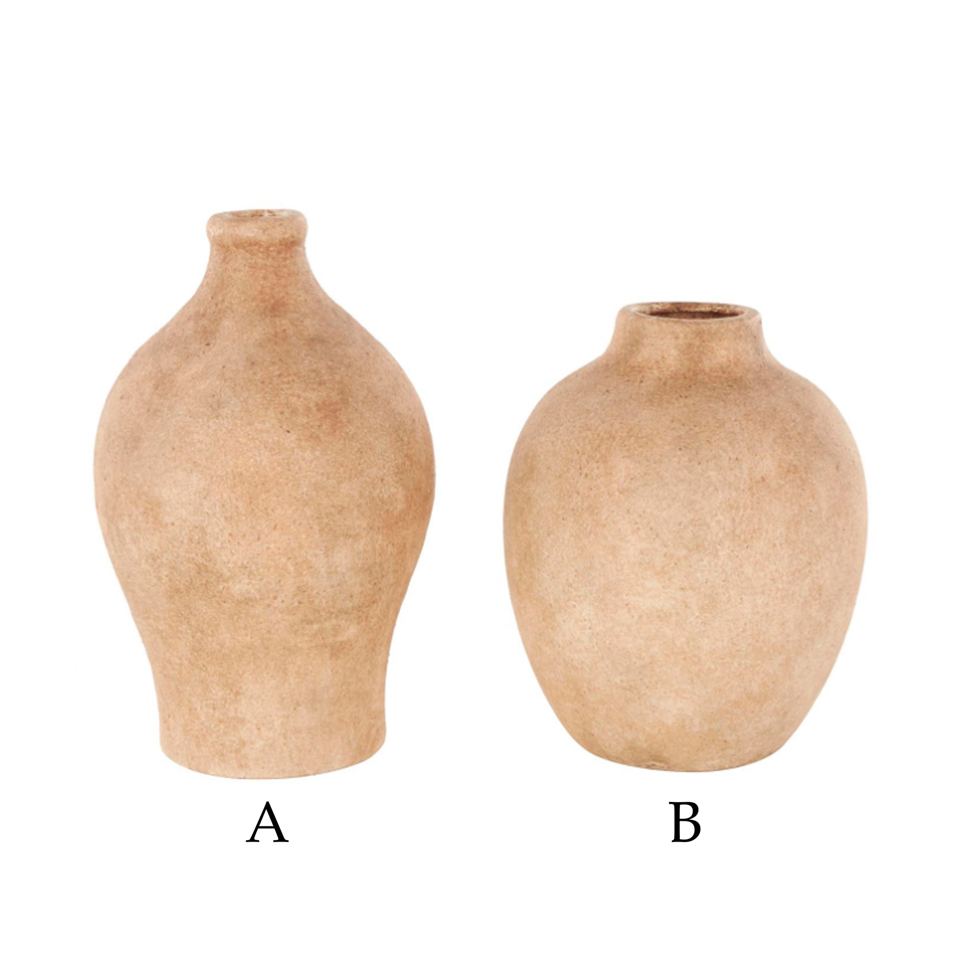 Vasija Burgos Pequeño presenta un color marrón claro con un acabado texturizado de estilo antiguo. Este juego de 2 jarrones de cerámica presenta un estilo antiguo y una textura única. Cada jarrón de cerámica marrón claro mide