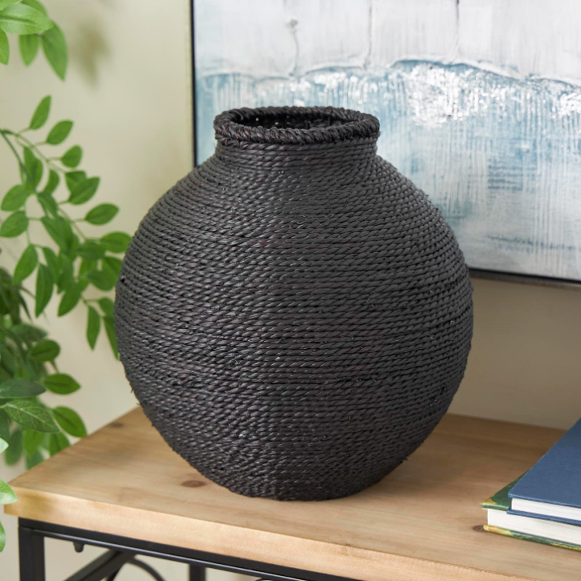 Vasija Cadis fibra redondo presenta un llamativo color negro con un acabado texturizado