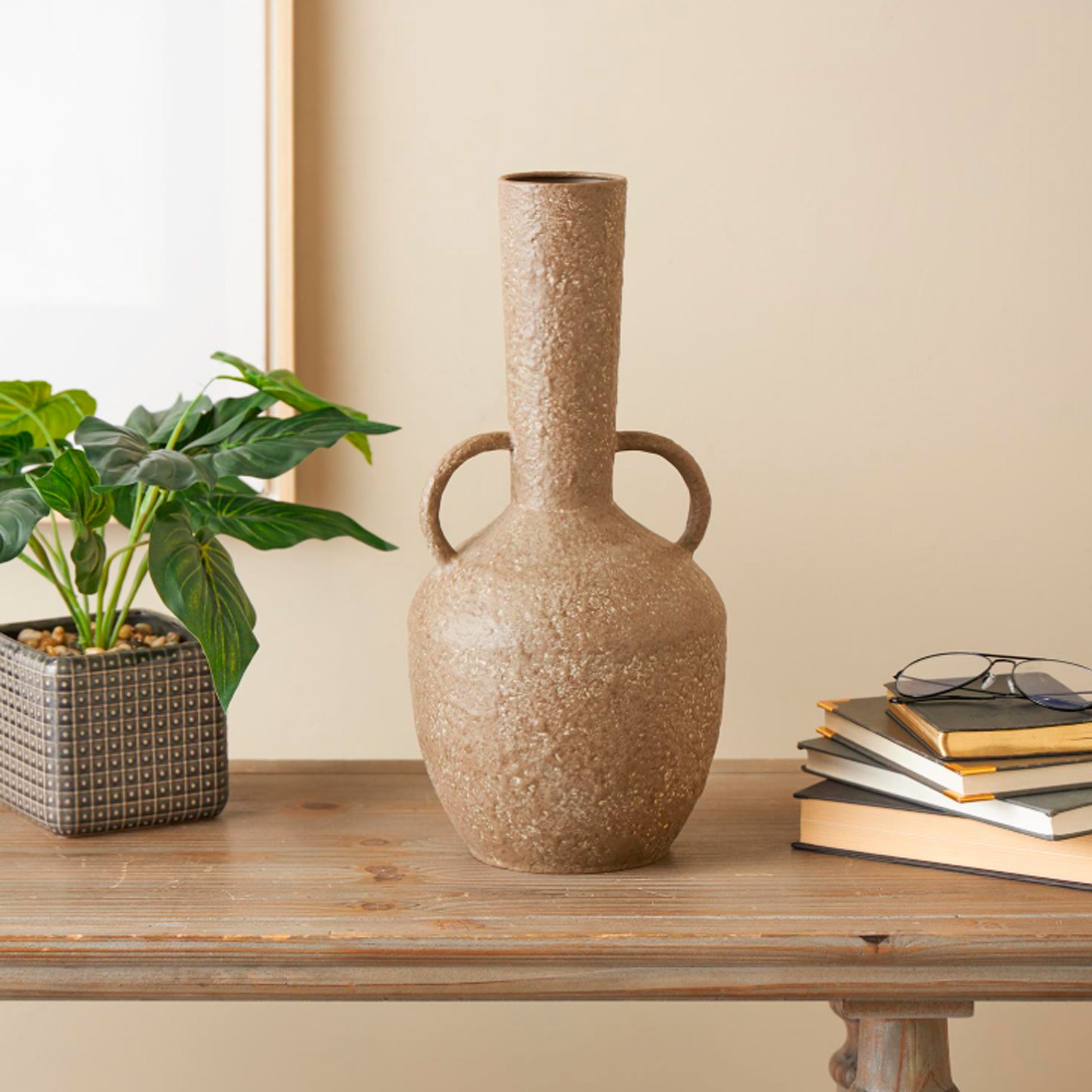 Diseñado con una belleza robusta y un encanto terrenal, donde la simplicidad natural, la calidez y los materiales orgánicos crean una atmósfera saludable, fabricado en metal incluye un asa de inspiración antigua para facilitar su transporte y añadir un atractivo estético.
