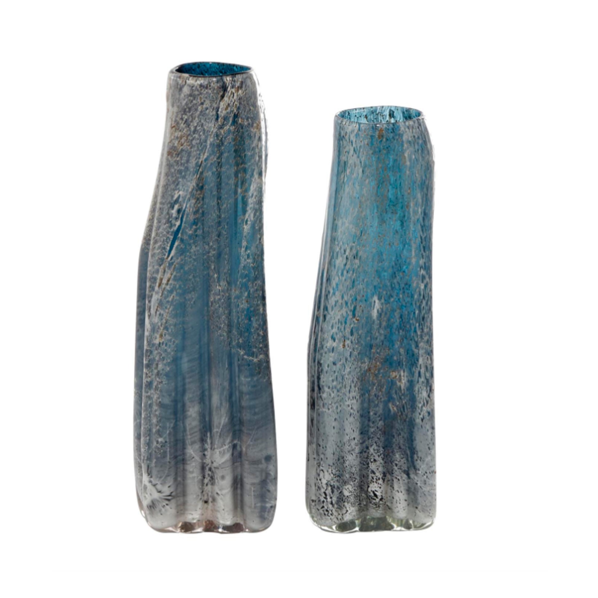 Fabricado en vidrio templado de alta calidad, el juego de jarrones decorativos azules irradia elegancia.